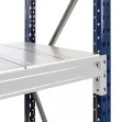 Beginmodule: deze module is altijd het beginpunt van een schap bestaande uit verschillende stellingen. De beginmodule bestaat uit 4 verticale staanders en zoveel legborden als gewenst. Hij kan zelfstandig worden geïnstalleerd zonder dat hij aan een andere module moet worden gekoppeld.