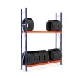 Het heeft ook een aantrekkelijk ontwerp in blauw en oranje of blauw en grijs en kan worden geconfigureerd tot een hoogte van maximaal 3 meter. Bovendien kunnen zowel de diepte als het aantal niveaus worden aangepast, waardoor het geschikt is voor de opslag van verschillende soorten banden, afhankelijk van de behoefte.